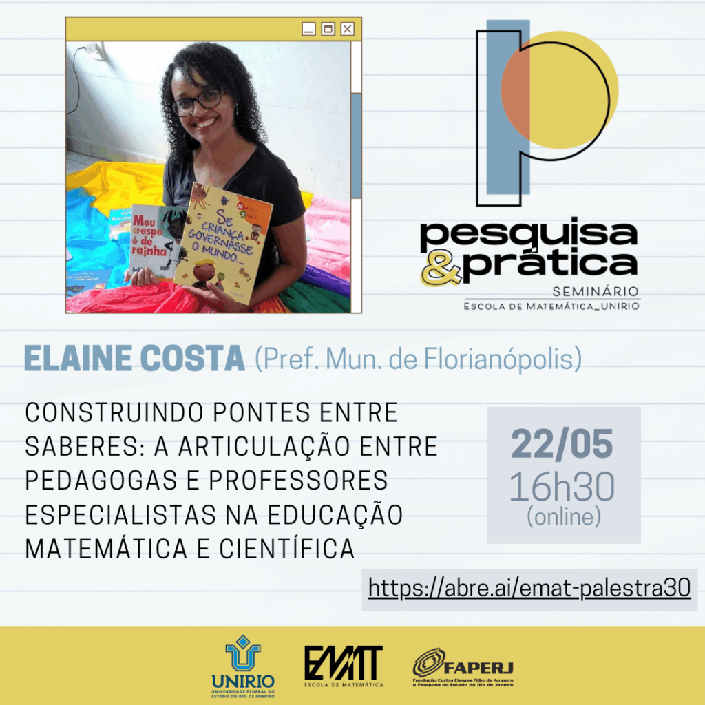 Palestrante: Prof. Elaine Gomes da Costa (Prefeitura Municipal de Florianópolis)