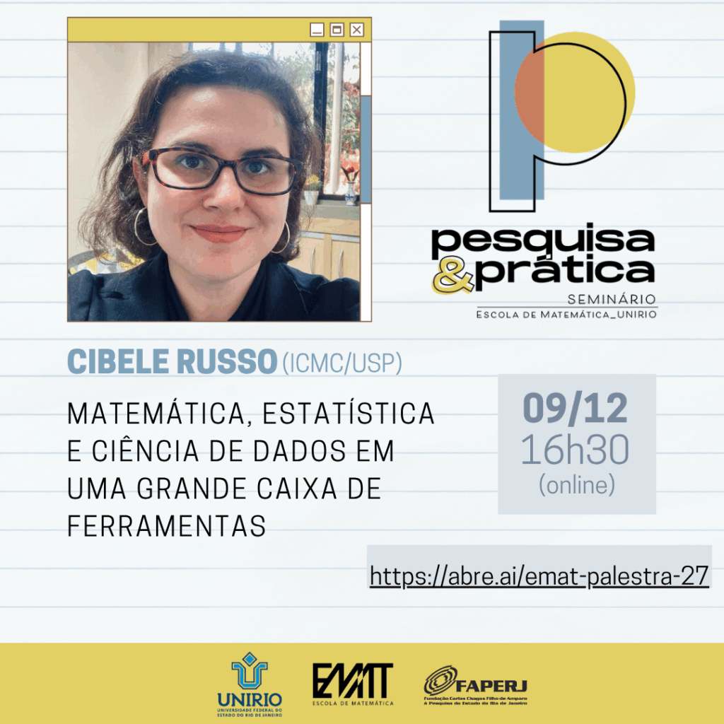 Resumo: Nesta palestra, exploraremos a interseção entre matemática, estatística e ciência de dados, revelando como essas áreas se complementam na construção de soluções para problemas de diversas áreas. Com ferramentas matemáticas, a estatística infere sobre padrões de uma população a partir de amostras. A ciência de dados, por sua vez, combina metodologias estatísticas, de matemática aplicada e de computação para extrair informações relevantes a partir de grandes volumes de dados. Será uma oportunidade para discutir sobre as habilidades matemáticas fundamentais que todo cientista de dados deve dominar, de álgebra linear a geometria, otimização e estatística. Discutiremos como essas disciplinas se interconectam e formam a base para a análise e modelagem de dados em diversas áreas de conhecimento.